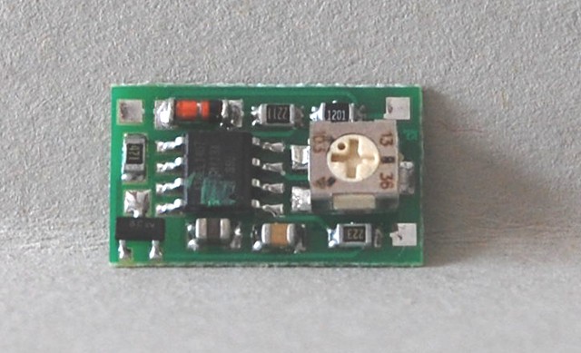 Mit diesem Baustein, können Sie die Fahrgeschwindigkeit anpassen. Durch den eingebauten Prozzesor bleibt das Fahrzeug bei einer Bergauffahrt genau so scnell. wie bei einer Bergabfahrt. Die Fahrgeschwindigkeit wird am Potentiometer eingestellt. Die Elektronik wird im Fahrzeug eingebaut und kann von außen eingestellt werden. Das Fahrzeug beschleunigt nach einer Stoppstelle wieder langsam hoch auf seine eingestellte Geschwindigkeit.