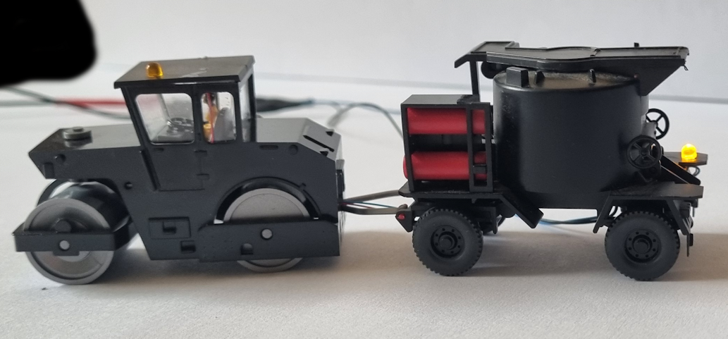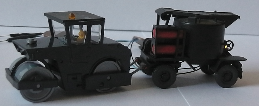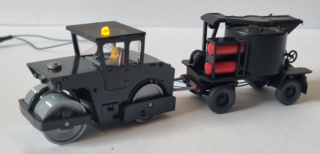 Standmodell Dampfwalze in HO beleuchtet mit 2x selbstblinkende LED